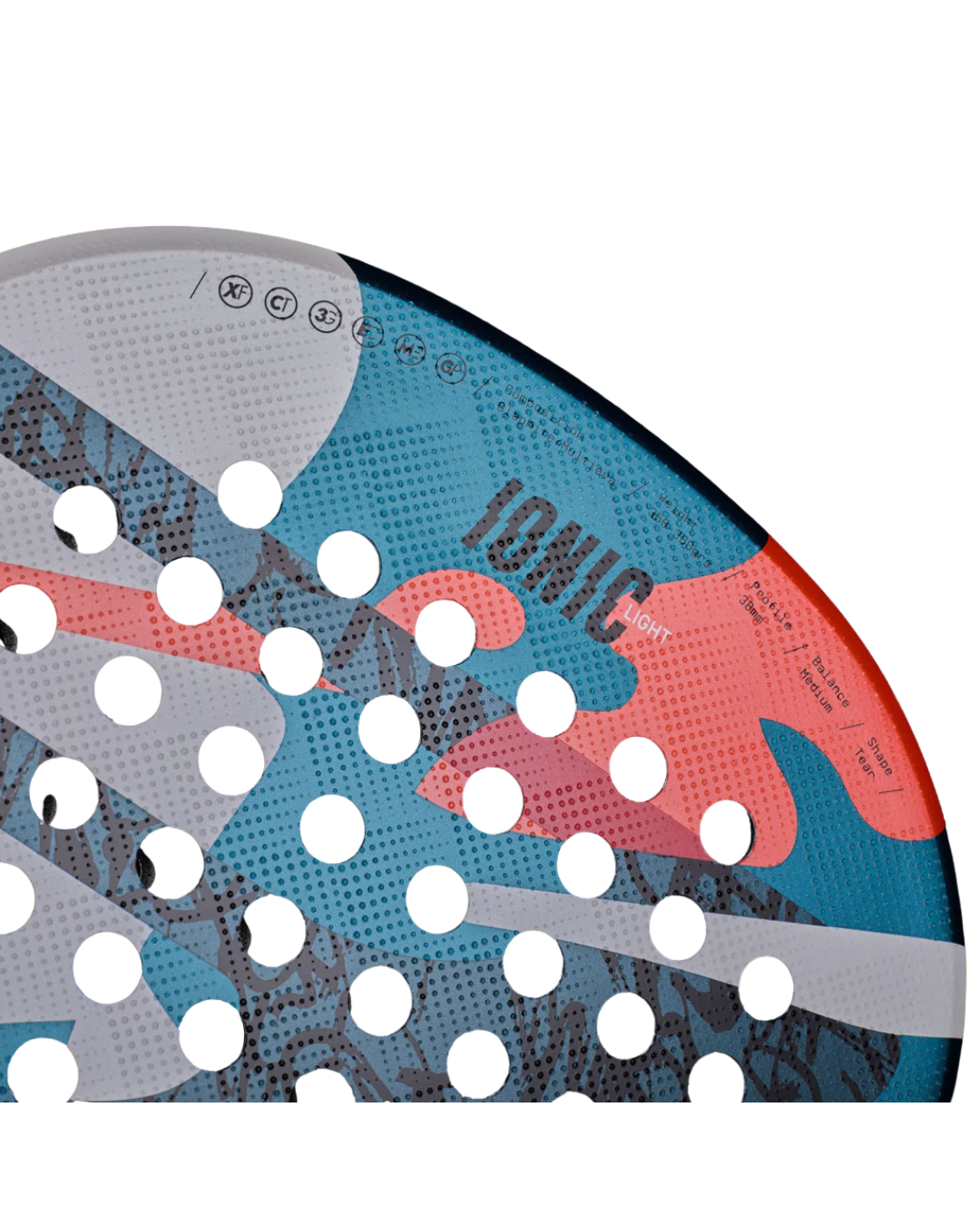 Su forma híbrida (lágrima) y balance medio ofrecen versatilidad, adaptándose a diferentes estilos de juego: desde golpes ofensivos con potencia, hasta defensas sólidas con control. Con una puntuación de 85/85 en potencia y control, la Ionic Light se posiciona como una de las opciones más equilibradas dentro de la gama Bullpadel.