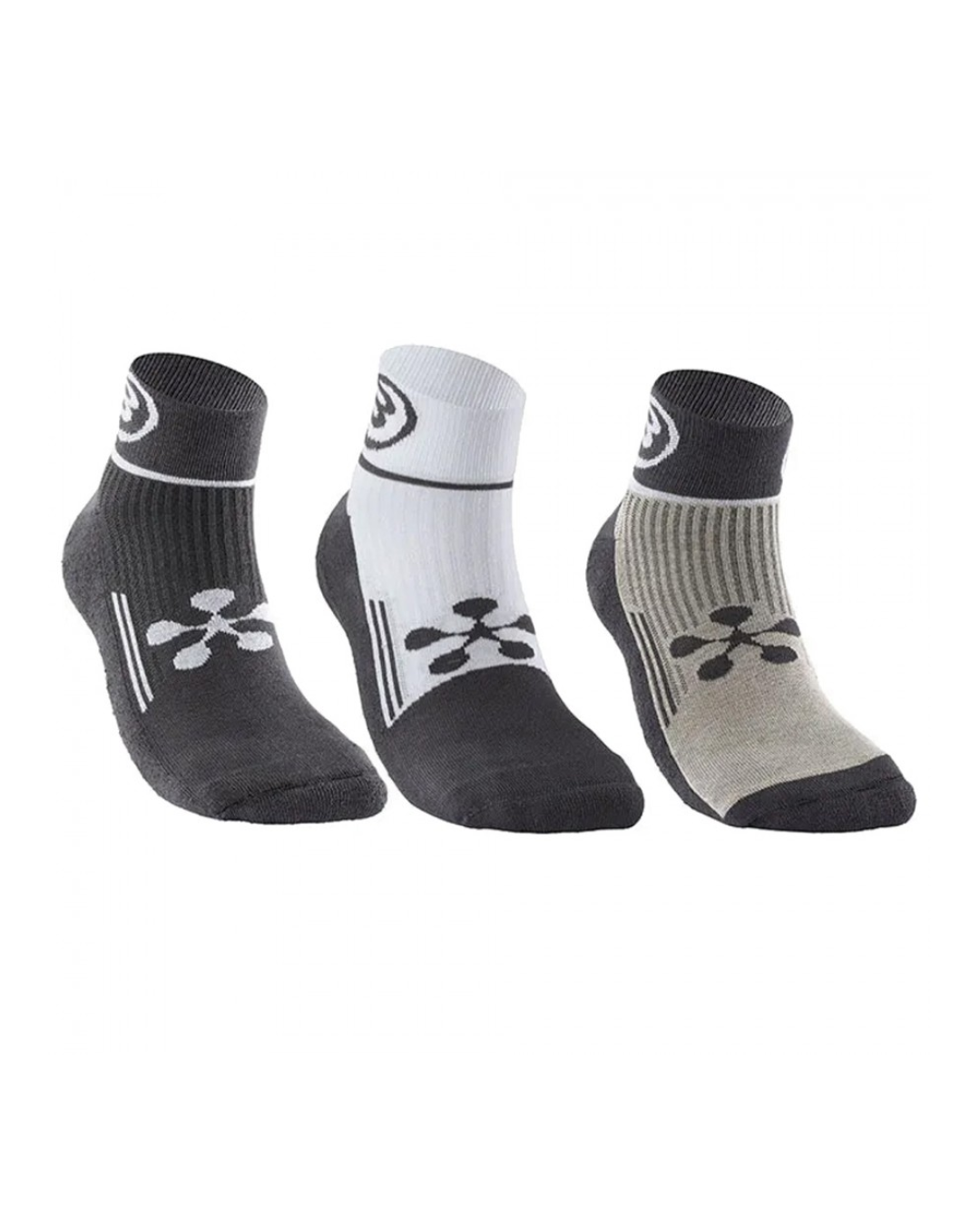 El pack incluye tres pares en colores distintos —blanco, marrón y negro—, lo que permite combinar fácilmente con diferentes estilos o conjuntos deportivos.