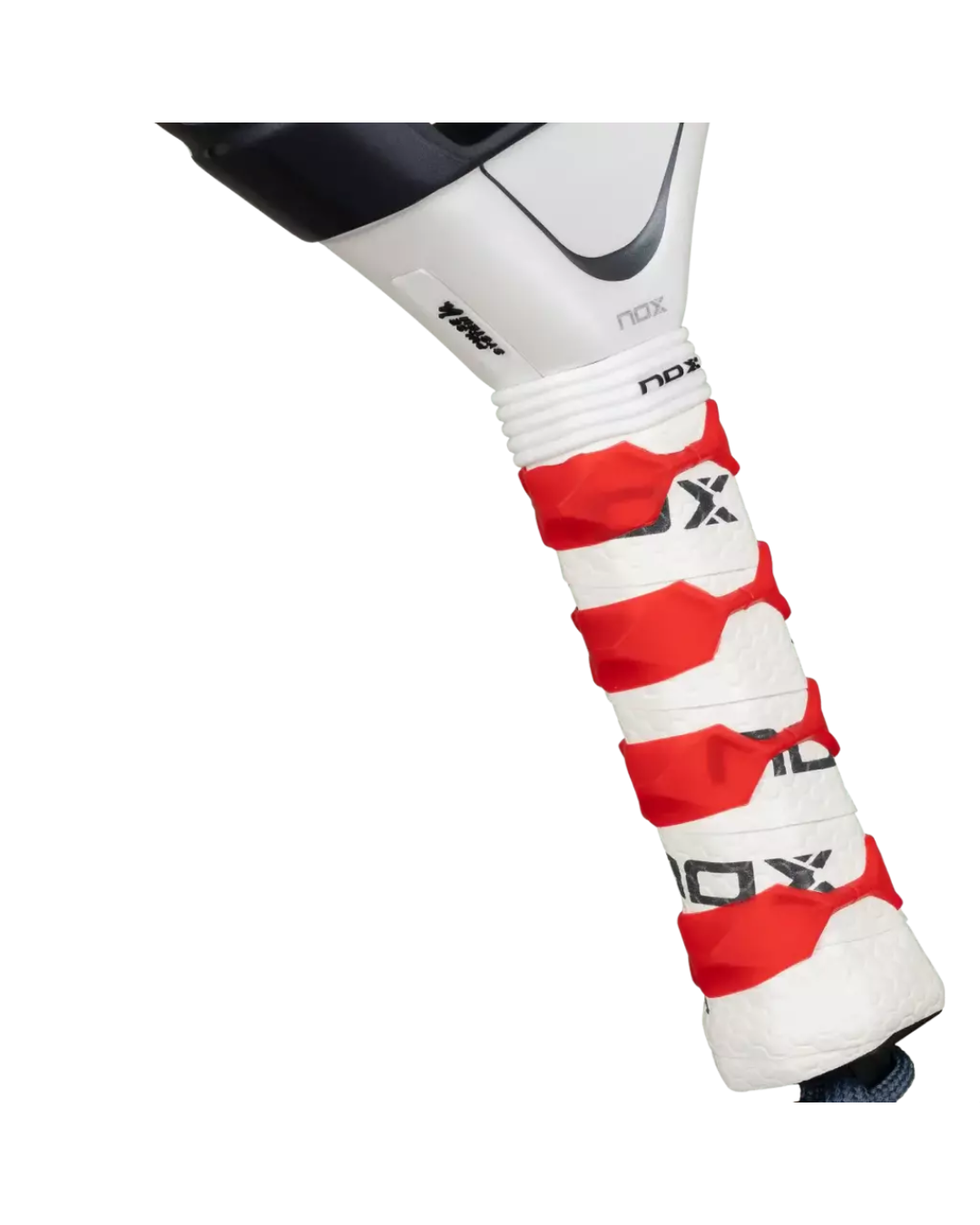 Pulse System & Custom Grip: Inserciones de goma en el marco y un grip ergonómico certificado por Testea Pádel que absorben las vibraciones, cuidando tu codo y mejorando la firmeza del agarre.