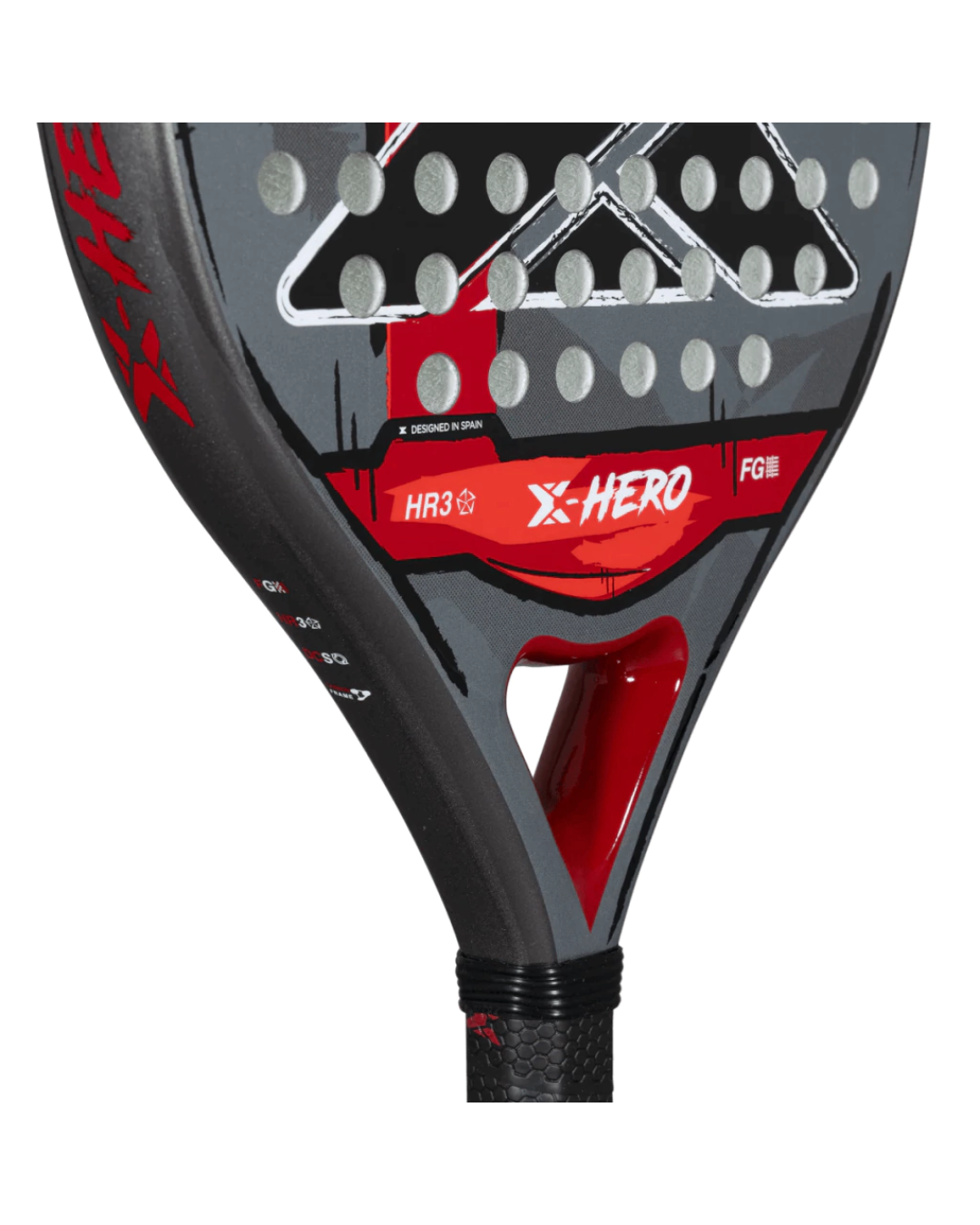 Marco 100% de Carbono: A diferencia de muchas palas de iniciación, la X-Hero cuenta con un marco de carbono que aporta la resistencia y estabilidad estructural necesarias para soportar el uso frecuente y mantener la firmeza ante impactos accidentales.