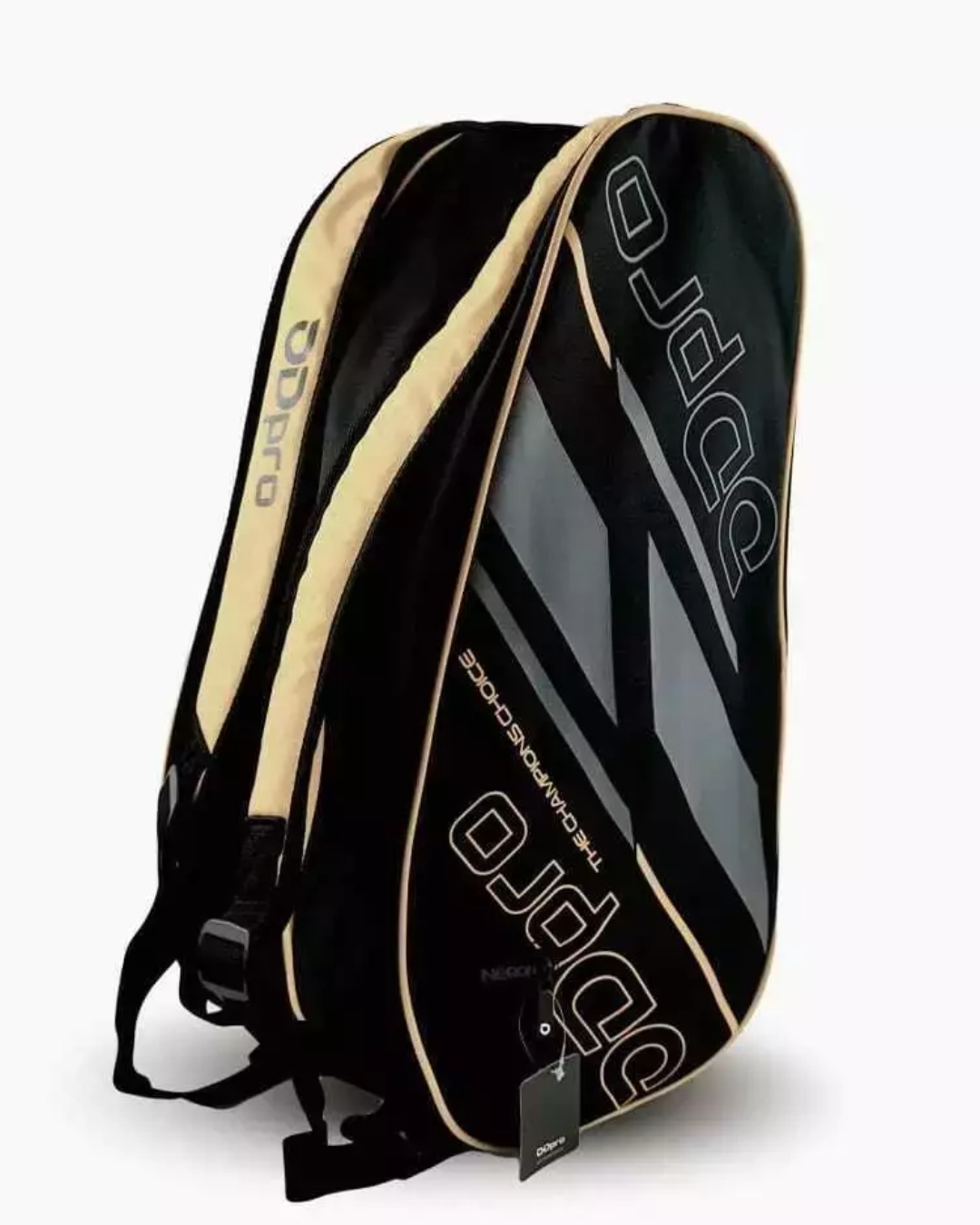 El ODPRO Bigger Dorado es un bolso paletero diseñado para quienes buscan amplitud, comodidad y un estilo llamativo, combinando de forma elegante los colores dorado y negro. Fabricado con materiales resistentes y pensado para acompañar al jugador en entrenamientos, viajes o competencias, este modelo se destaca por su excelente distribución interna y su formato cómodo para transportar.