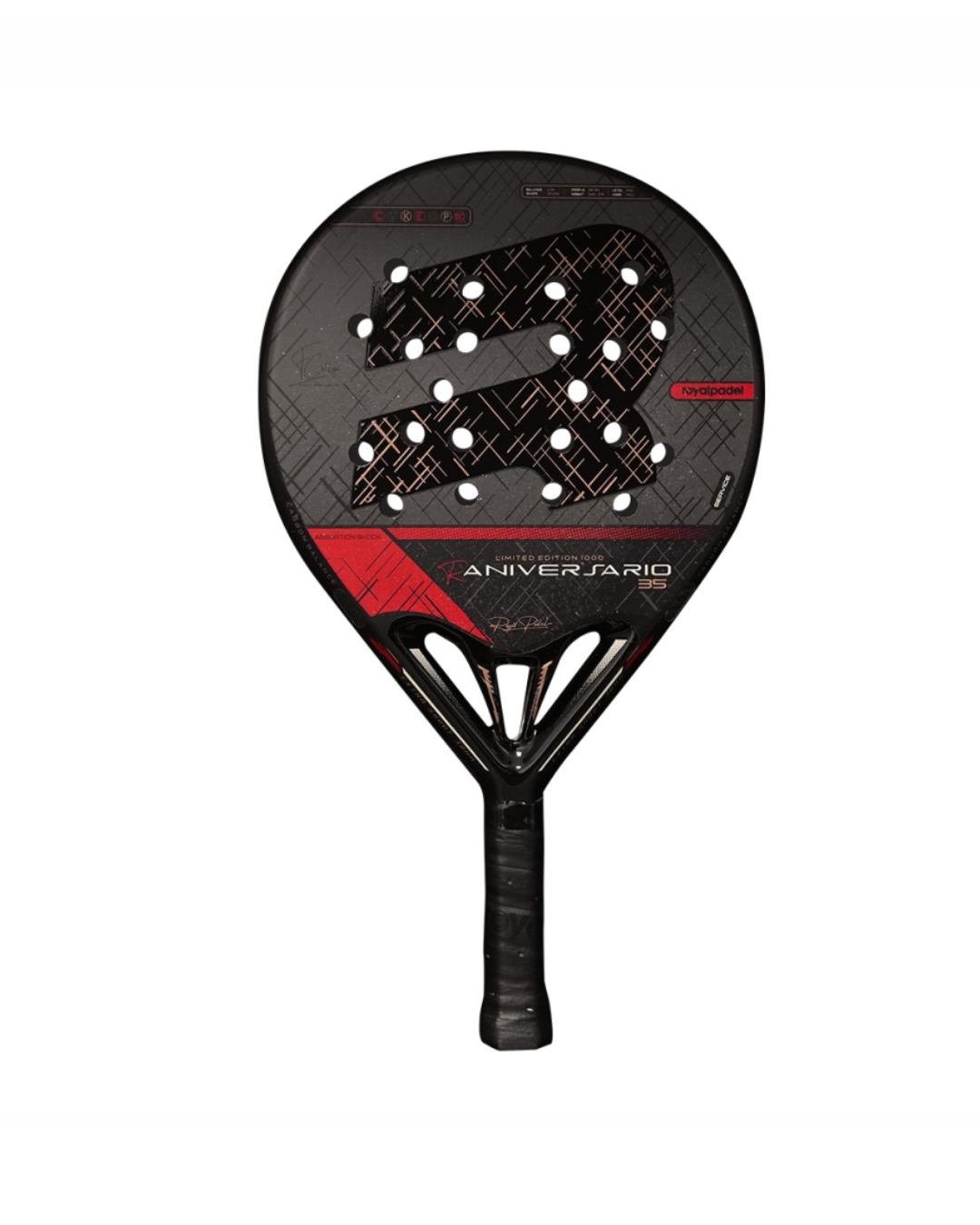 La Royal Aniversario 35 es una pala pensada para quienes buscan dar un salto de calidad en su juego. Diseñada con materiales de primera línea y un acabado elegante en color negro, combina potencia, control y confort para ofrecer una experiencia completa en la pista. Con ella, podrás ejecutar golpes con precisión y seguridad, disfrutando de un equilibrio perfecto en cada partido.